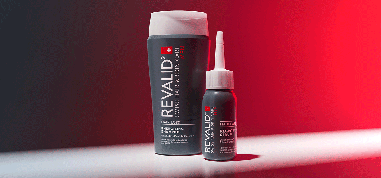 Linija Revalid proti izpadanju las za moške je visoko učinkovita rešitev, ki deluje neposredno na izvor težave. Vsebuje sestavini Redensyl® in SantEnergy™. Ta švicarska formula pomaga revitalizirati lasne mešičke, ščiti pred oksidativnim stresom in vidno povečuje gostoto las.
